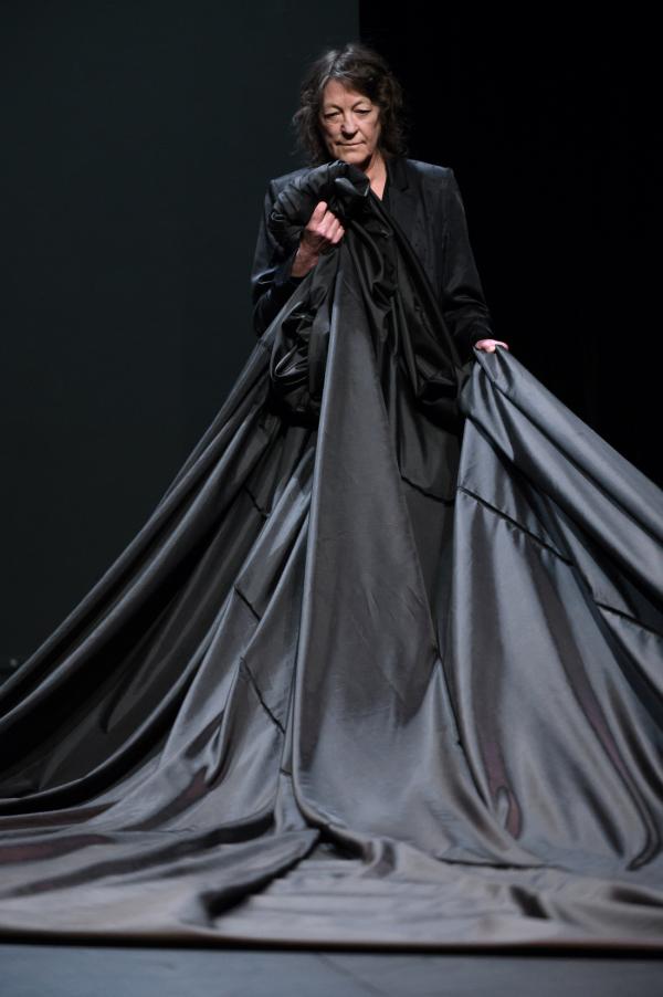 Sa personnalité et sa présence explosent dès qu’elle apparait seule en scène vêtue d’un tailleur pantalon bleu et d’un bonnet. Avec un indéniable raffinement, elle déploie subtilement quelques déplacements alors que, d’un seul coup, la voix d’Odile Duboc envahit toute la salle et nous submerge dans un bain d’émotion. Il est alors étonnant de constater que la mémoire auditive ne se tarit jamais. Immédiatement, ce coup de poing dans le cœur fait ressurgir tant de souvenirs, nous rappelle ces soirées à applaudir ses magnifiques créations, son style si personnel et cette femme généreuse, pointilleuse, drôle et tellement inventive.