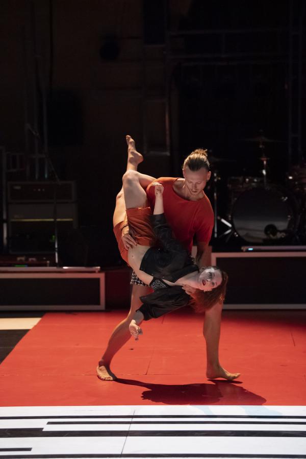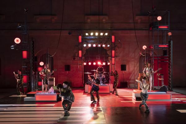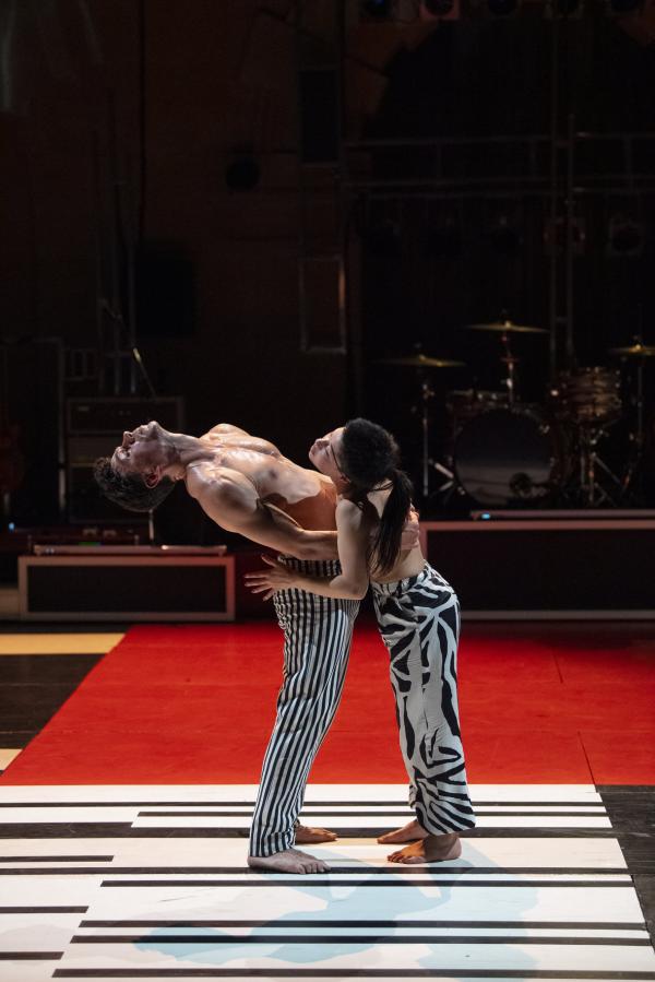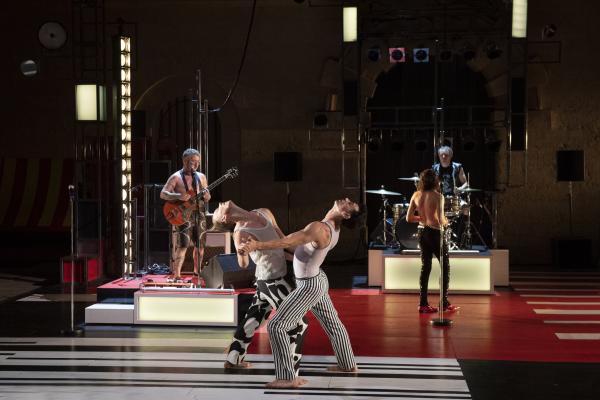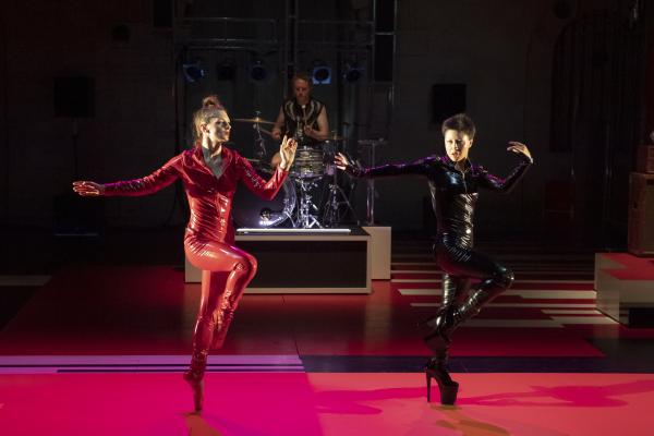 Au final, de la punk ballerina, ne demeure qu'un petit numéro où face à Eléa Ha Minh Tay, en catsuit vinyl noir et plateform-boots à talons aiguille vertigineux, se déplie Violette Wanty portant une tenue identique mais rouge et sur pointes de même nuance. Beau, bien fait, mais court ! Car Decouflé a fait comme d'habitude, une suite de numéros brillants, formidablement réalisés, sans trop se préoccuper de dramaturgie (euphémisme) et sous forme d'un concert mis en scène… C'est bien, beau mais certainement en dessous de ce que l'on pouvait espérer. Que l'on s'entende, c'est formidablement réalisé, énergisant et sympathique, mais, comme l'on dit d'un vin séduisant et un peu élémentaire : court en bouche…