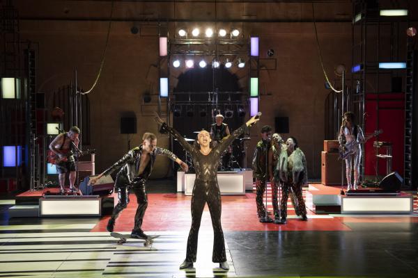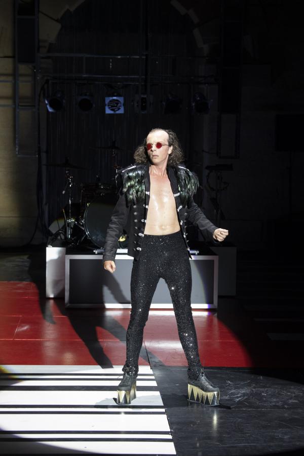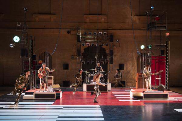 Et Decouflé lui-même, avoue en répondant au journaliste du Midi Libre quelque jours avant la première « Oui, il y a aussi toute une équipe technique et artistique derrière. Je retrouve Jean Rabasse qui a fait le décor, et travaille avec moi depuis les Jeux Olympiques d'Albertville en 1992. Il y a aussi Philippe Guillotel, aux costumes, avec qui je bosse depuis... avant les JO, puisqu'on était déjà ensemble sur Codex. Bref, on a remonté aussi ce trio ! ». Et puis il y a les musiciens. Ne pas se tromper : Arthur Satàn, du groupe JS Satàn, bon guitariste et son batteur, Romain Boutin, font mieux que le job, mais il faudrait un Webo (Bowie) comme pour le spectacle de 2015 à la Philharmonie de Paris pour être au niveau des pointures ci-avant présentées. Les musiciens font mieux qu'honnêtement le travail mais sans transcender le bouzin ! Sauf qu'il y a la bassiste. Les plus rhumatisants des rhumatisants, entre deux prises de curcuma, se diront peut-être (avant Alzheimer) que cette superbe liane brune au chic piquant ressemble à quelqu'un. Dans les années 1980, cette danseuse incroyable, soeur d'une chorégraphe** ... Or, cette bassiste brune et piquante qui brûle littéralement le plateau de sa présence, s'appelle Louise Decouflé et papa est manifestement gaga du talent d'icelle…