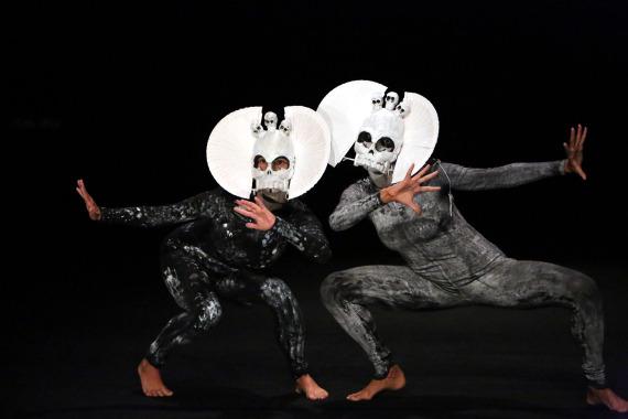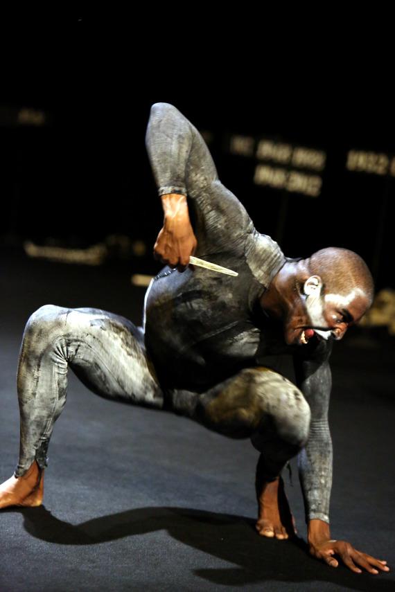 2) Salamon passe d’une version initiale de 2h30 à 1h20, ce qui nous laisse largement le temps de rester abasourdis et fascinés par les sauts, les costumes, les visages de morts, l’éclat des couteaux ainsi que par les sons gutturaux et animaliers qui sortent des gorges et des ténèbres.