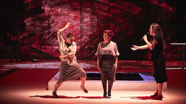 Trois femmes sur scène. Grito Pelao n’est pas seulement l’union de Rocío Molina et de Sílvia Pérez Cruz, chanteuse qui, à chaque chanson, dévoile un nouveau timbre. Ces deux femmes encore jeunes sont déjà presque des légendes, mais le défi majeur de la pièce ne relève pas de leurs savoirs ou de leur simple cohabitation sur scène.