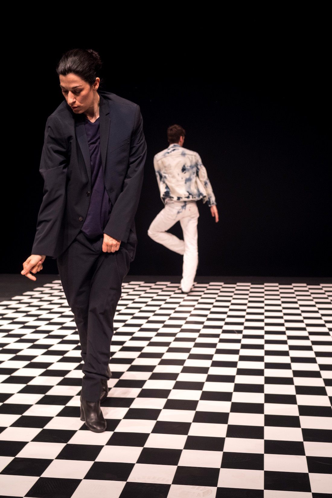 Le tout ne manque pas d'une ironie certaine. Un tiers intervient qui, bellâtre, se prélasse. Puis de nouveau des entraînements gymniques et, surtout, des interprétations de chanson en grec : le fameux rebétiko ! A la fin, les comparses tirent le tapis vers le fond du plateau, largement ouvert, où l'un des deux hommes, en silence et au ralenti danse une manière de sirtaki lent et concentré quoique nostalgique qui induit une fin assez poétique. On rappellera au passage que le sirtaki n'a rien d'une danse traditionnelle grecque, mais fut inventé pour le film de Michael Cacoyannis, sorti en 1964, Zorba le Grec.