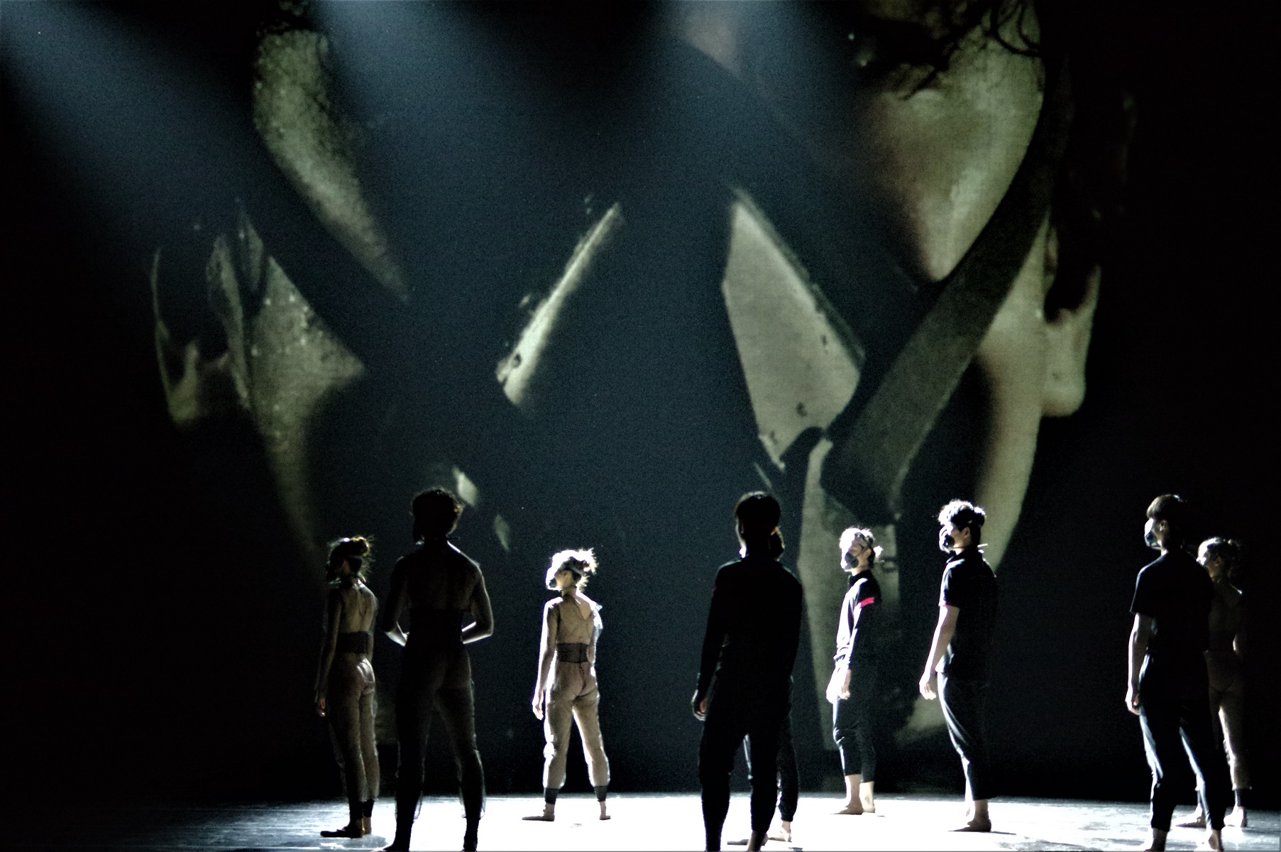 Danser avec un masque représente un défi physique particulier, surtout quand il s’agit de masques subis et non choisis. La chorégraphe Ju-Hyun Jo [nous l’avions rencontrée en 2016 lors d’une soirée partagée avec Fabrice Lambert (lire notre critique) a fait danser sa compagnie, renforcée pour l’occasion par quelques danseurs invités par le festival, en portant des masques noirs ressemblant à des museaux. A l’origine elle avait créé cette chorégraphie hautement dramatique, qui pousse les interprètes vers l’épuisement, pour parler de pollution, sujet omniprésent car la Corée du Sud est régulièrement envahie de micro-particules émises par l’industrie chinoise.