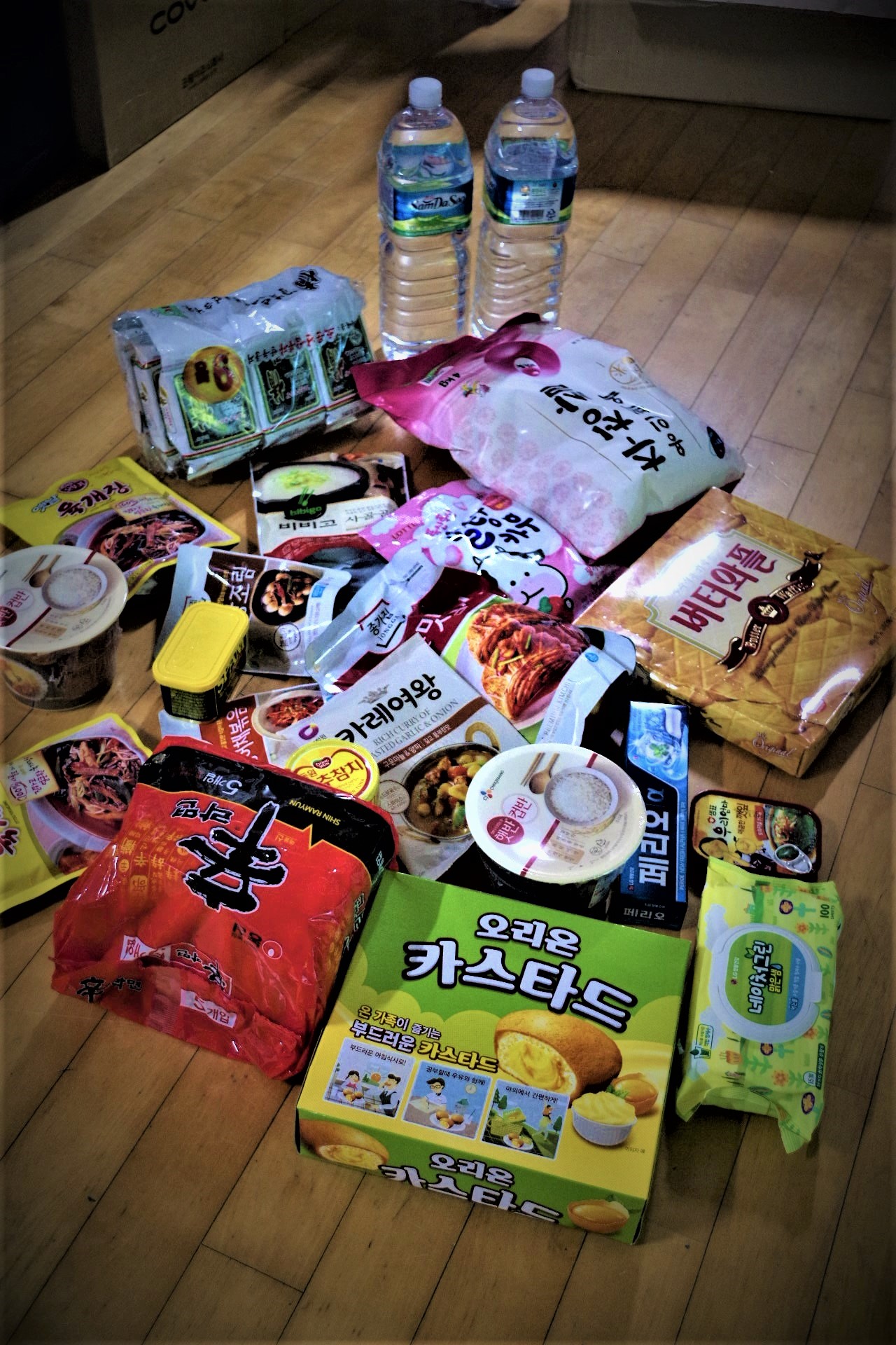 Par personne confinée, l’état offre entre autres : quatre litres d’eau, quatre kilos de riz, des plats de nouilles, des kimchis et autres condiments, diverses sucreries et bien sûr du désinfectant et du gel hydroalcoolique. Et le thermomètre !