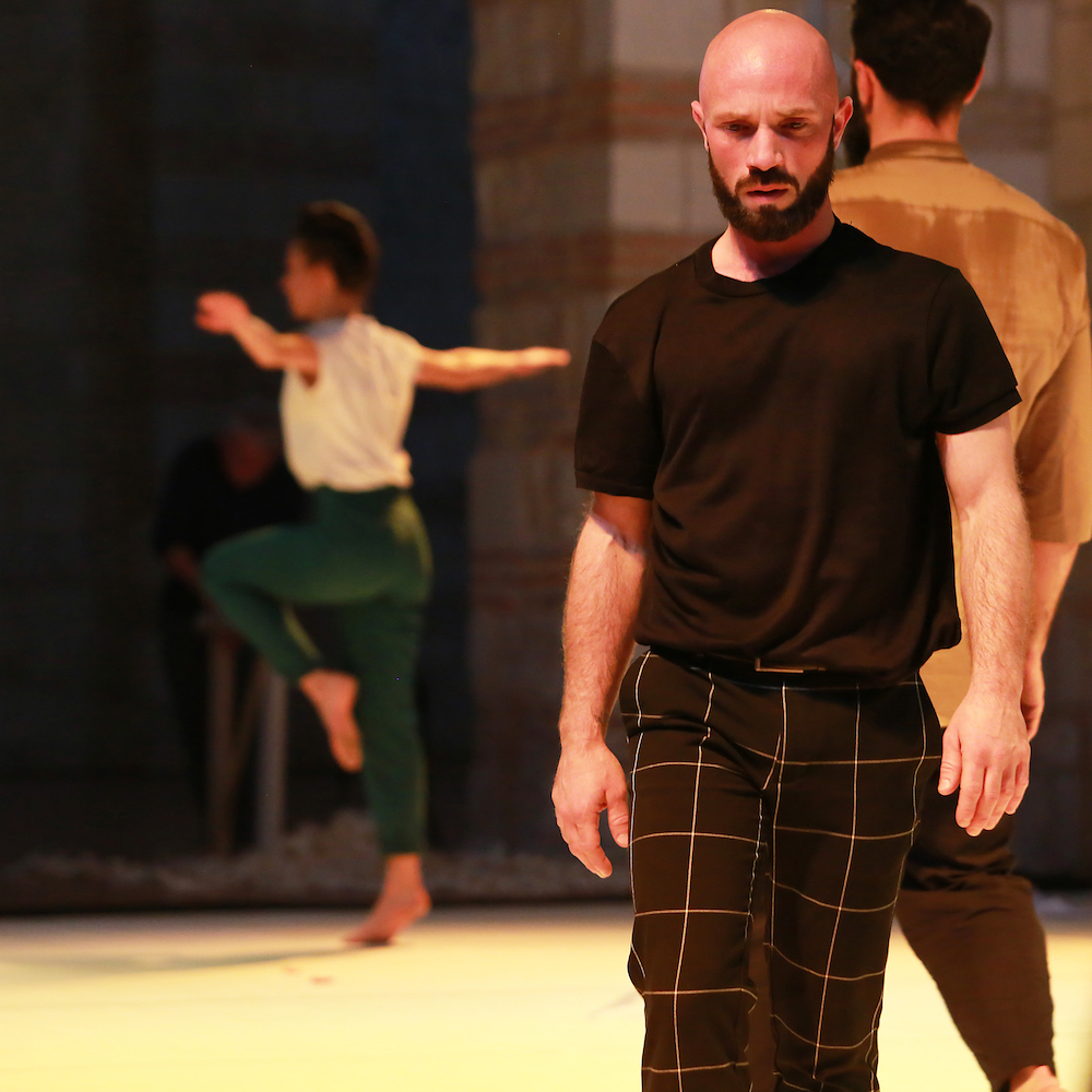 Yvann Alexandre : Il y a en effet de la danse et des textes, signés Sylvain Patieu avec qui j’ai collaboré pour En armes, notre duo créé pour le festival Concordan(s)e, ainsi que un duo musical de batterie et soubassophone, cet énorme instrument qui empêche le corps. Quand j’ai créé Les Fragments Mobiles à la Conciergerie avec Monuments en Mouvement à Paris, il y avait ce rendez-vous, à une heure fixe. Mais dans un monument il y a plein de petits espaces qui ne sont pas accessibles pour autant et la lumière change au cours de la journée. Le rapport à la pierre se modifie. Ca m’a donné envie de créer une œuvre complètement explosée, avec une trentaine de petites formes, qui durent entre une et vingt minutes. Elle se déplient et se replient. D’où la référence à l’origami. Les formes se jouent dans des espaces différents et à des moments différents pour révéler d’autres facettes du lieu et de la chorégraphie. Par exemple, un solo sera donné dans une petite pièce fermée et dans un grand carcan végétal. La résonance entre les corps et le décors sera très différente. Pour le spectateur, le parcours est libre. Il n’est pas invité à nous suivre mais reçoit un programme qu’il déplie pour connaître les lieux et les horaires de différentes propositions. Beaucoup de choses se déroulent en simultané , il lui est donc impossible de suivre tout en même temps mais il est autonome pour construire sa visite du monument. Les horaires d’Origami s’adaptent aux monuments. Au Château d’Angers nous avons convoqué les spectateurs à une heure très matinale. Car on ne sait pas que ce lieu est une réserve d’oiseaux. Au petit matin, ils se sont trouvés au cœur d’un ballet d’oiseaux et de leurs chants. C’était magique.