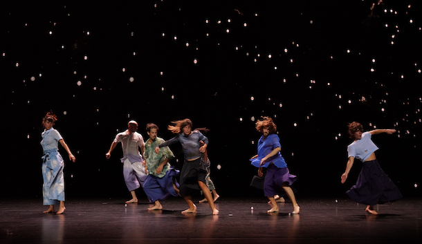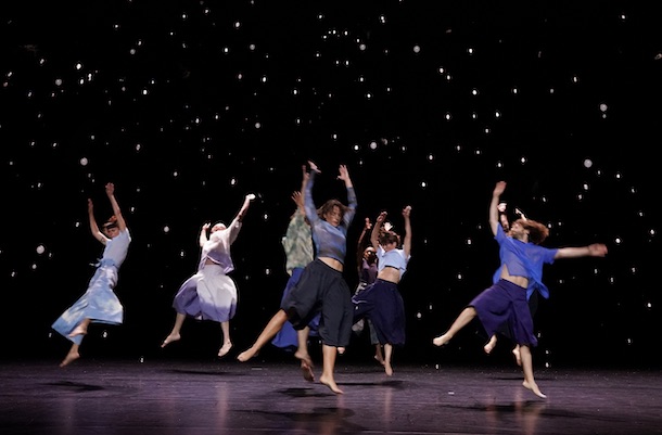La chorégraphie se compose et se recompose sans cesse, parfois mer étale, parfois mer violente et grosse de la tempête prête à déferler. Et c’est là que RENVERSE prend toute son ampleur. Les corps des interprètes s’ébauchent dans un léger brouillard, s’évadent, se reprennent et explosent en tours et en sauts, se recomposent en une seule ligne, puis se déchaînent en rafales, jaillissent sous la pression des souffles, se tordent et fusent, comme des incandescences de lave, à partir d’un alignement d’où s’échappent toutes sortes de mouvements échevelés, désordonnés, sous des éclairages aux tons froids ou flamboyants comme les belles et intrigantes couleurs des poissons.