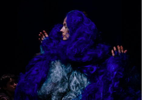 A partir de cheveux et de poils bleus, Runway tisse un filet d’images auquel il est impossible de s’extirper. Les images se composent de chair humaine et d’étranges excroissances faites d’une matière pas tout à fait humaine, formant des filets et des tresses qu’on décortique sur scène et dont on distribue des échantillons au public. Quand il tombe entre les mains de Nadine Fuchs et Marco Delgado, le cheveu sait tout faire. Brillant de tout son bleu, il couvre le visage tel un voile ou un collant en nylon, il sert d’éponge sur la peau nue, il forme des excroissances de pubis, il se transforme en pompons de cheerleaders, il devient accessoire très fashion ou manteau royal et il se laisse accrocher au plafond, formant de doux et chauds stalactites.