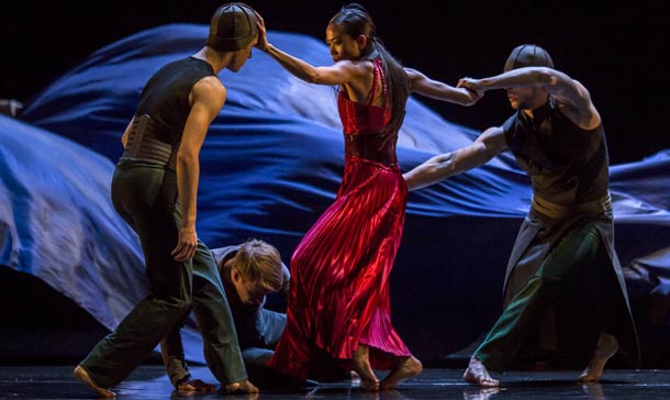 L’équilibre entre le groupe, qui joue littéralement comme un chœur antique, et les protagonistes : Isolde (Sarawanie Taratanit), Tristan (Geoffrey van Dyck), Marke (Armando Gonzalez Besa), et le Témoin (Sara Shigenari) (qui allie en un seul rôle Brangäne, le destin et une présence énigmatique), est remarquablement distribué. Les danseurs du Ballet de l’Opéra de Genève devenant le gonflement des vagues, les marins obstinés du temps qui passe, les courbes d’un littoral, le tranchant d’une lance.