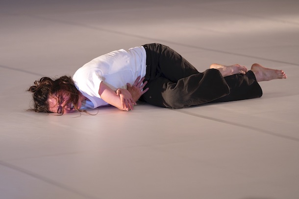 Veyrunes éructe et chante, bascule ou fait le grand écart, hurle et compte, court et sautille, amorce des routines et les fait exploser. Face au minimalisme qui l'amène lentement vers les 900.800 et quelques, elle déploie une telle invention cinétique qu'on pense évidemment aux 10000 Gestes de Boris Charmatz [notre critique]. Et toute la partition est tellement authentique qu'on prend chaque geste pour argent comptant. Reprend-elle ici vraiment du matériau conçu pour quelqu'un d'autre? On peut en avoir l'impression, non ici mais quand elle interprète Oona Doherty. Voice of Power devient un acte chorégraphique totalement authentique, un empowerment au féminin où la prise de pouvoir sur le plateau reflète toute la dimension émancipatoire du projet Motor Unit.