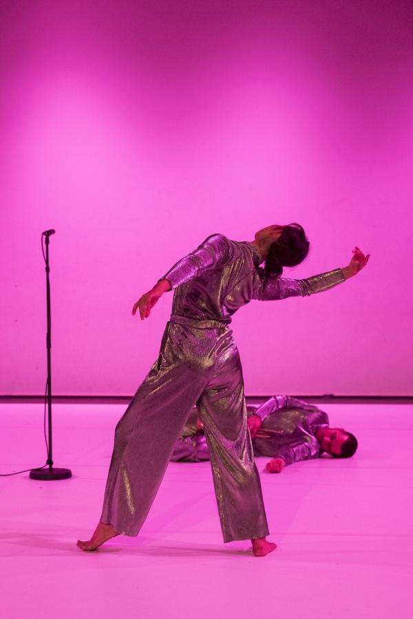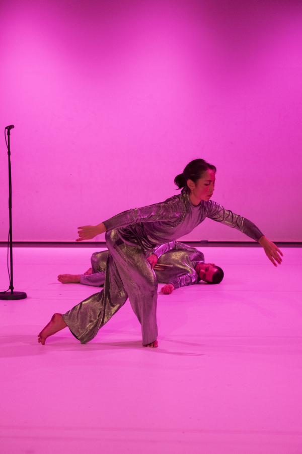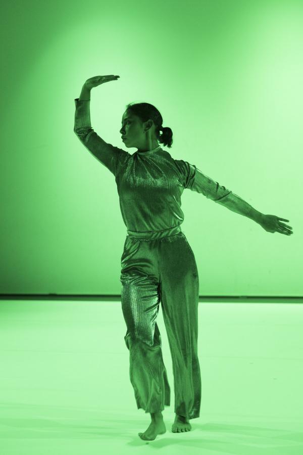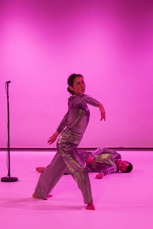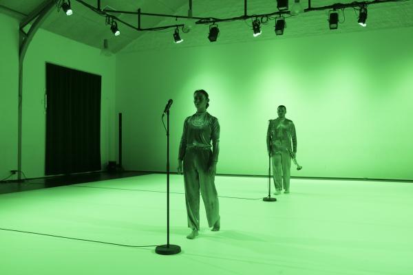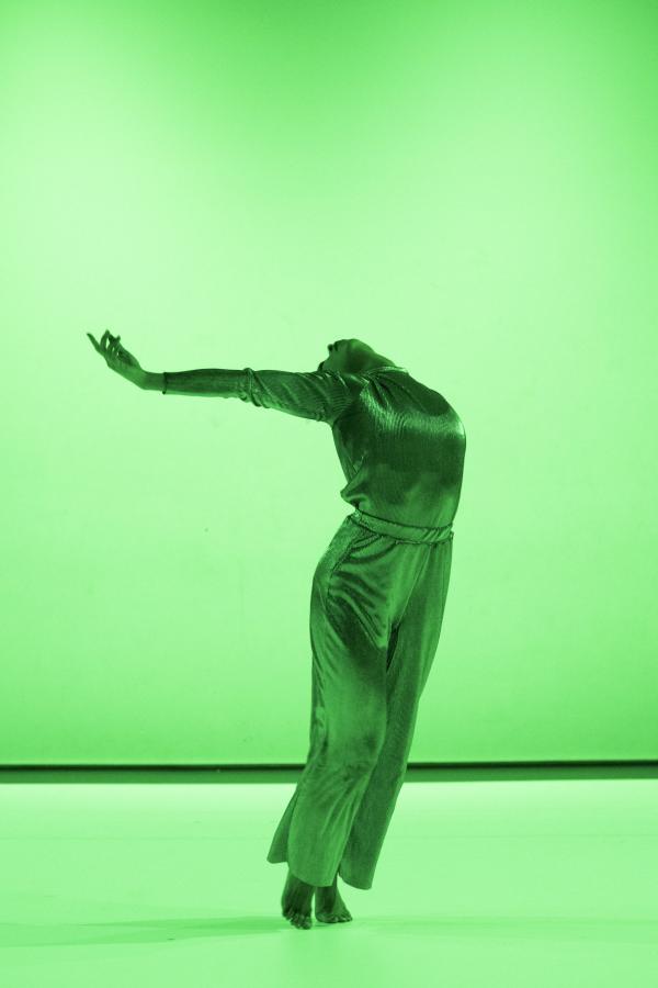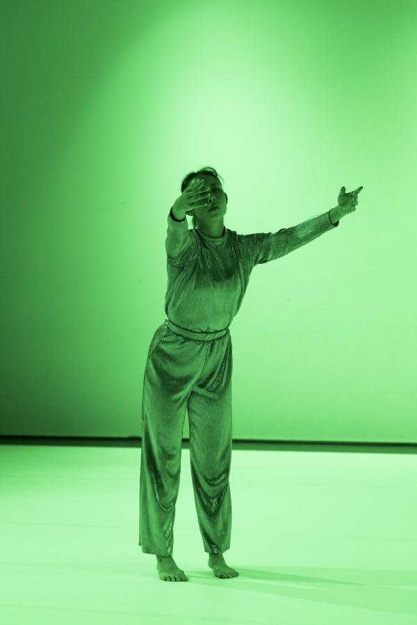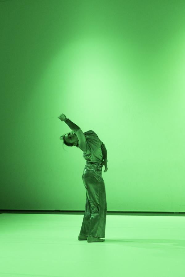 De Melbourne, Lilan Steiner utilise l’intelligence inhérente au corps comme outil principal pour créer des expériences visuelles, sonores et kinesthésiques avec Memoir for Rivers and the Dictator. Sous des lumières vertes et vêtus d’une combinaison argentée, la danseuse et chorégraphe accompagnée par Reuben Lewis à la trompette, évolue dans une danse qui développe tous les sens de l’anatomie. Du bout des doigts à la pointe des pieds, elle glisse, tourne et se déplace avec une grâce exquise.