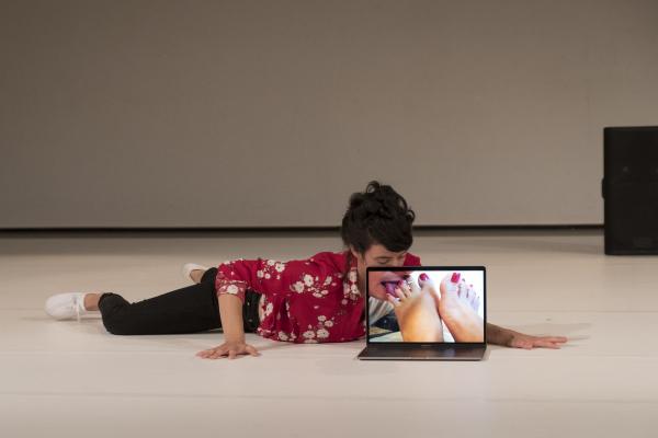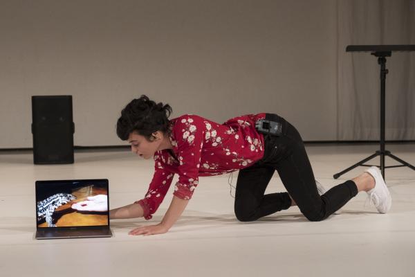 Ambiance totalement différente avec Forecasting de Giuseppe Chico et Barbara Matijević qui basent leur pièce sur un recueil de vidéos amateurs puisées sur Youtube. Au centre du studio trône un ordinateur.