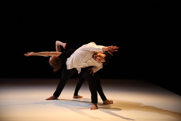 François Veyrunes : Ce qu’on peut percevoir comme de la lenteur est une conséquence de mon travail. Ce n’est pas un but fixé au préalable et pas non plus une manière de m’opposer à un monde qui irait trop vite. Ce qui m’intéresse est de ne rater, dans la propagation du mouvement dansé, aucun grain, aucune cellule, pour garder en permanence la lecture du mouvement et le volume du corps, pour ne jamais perdre de vue l’être, et le révéler dans toutes ses dimensions. La seule solution que j’ai trouvée est d’étirer le temps. Dans Sisyphe heureux ce phénomène devient encore plus radical, avec encore plus de défis gravitaires au terme de chaque acte chorégraphique. Pour être technique, nous allons encore plus loin dans les oppositions de corps. Ca veut dire que quand le bras bouge dans une direction donnée, l’épaule, le dos, la jambe, le bassin etc. résistent au maximum.