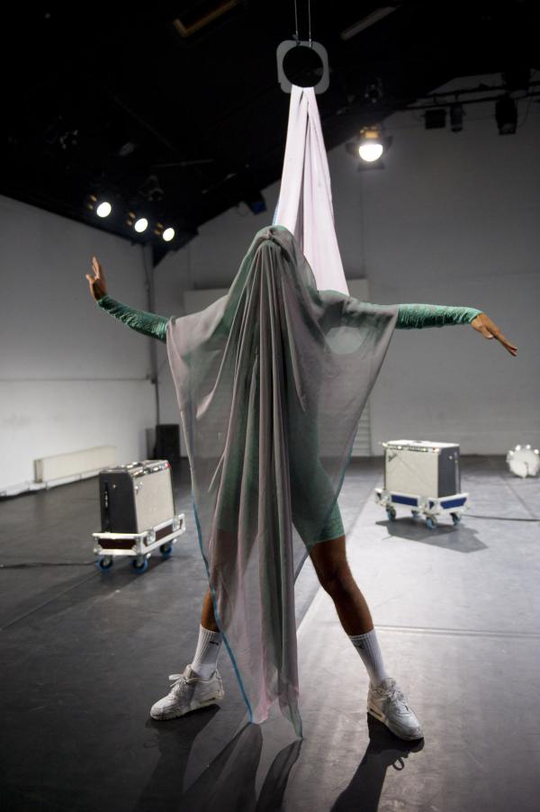 Il y a dans ce studio un côté laboratoire de création, d’humain en devenir, oscillant entre état naturel et silhouette noire, et nous sommes doucement éblouis par les flashs du stroboscope. Mais la simplicité règne, on est loin de la puissance déployée dans certains spectacles de Romeo Castellucci, par exemple. Ici, les images s’évaporent telle une fumée douce. God's First Creature offre une fusion d’Adam et de la lumière, les deux pouvant réclamer le titre de « première créature de dieu ». Le chant guttural de Schumacher, premier acte de don face au public, ressemble d’abord au son de l’univers (« aauuuummm ») pour traverser le temps et trouver des résonances contemporaines. Avec ces images répétitives, le manège tourne, mais la pièce aussi tourne en rond.