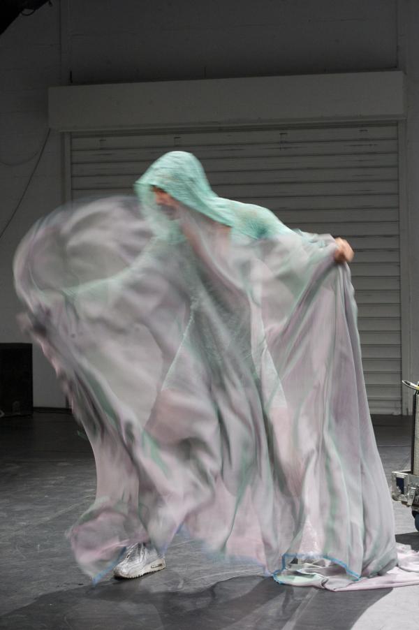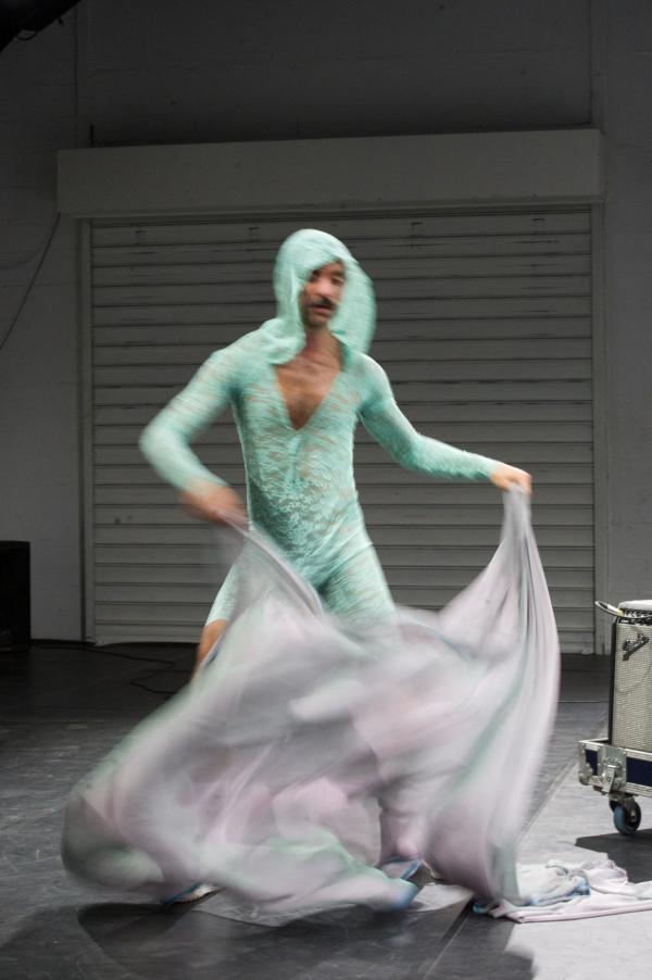Autre solo dévêtu, Erotic Dance de Luke George. Ici aussi, la valse avec le regard du spectateur fait tourner la tête. Cet Australien surfe sur nos fantasmes et nos connaissances en histoire de l'art. Sa nudité arbore le naturel de Laban, la peur du Sida, les ambivalences entre plaisir et effort ou le voile et la sensualité qu'il peut cacher. Dans les tremblements de l'interprète et son univers sonore on pourrait voir une métaphore du fameux "s'envoyer en l'air", mais les images de corps qu'il nous renvoie parfois sont plus subtiles que ça. Entre les deux options face à la nudité, à savoir la banaliser ou l'érotiser, il préfère ne pas choisir pour tisser des renvois permanents.