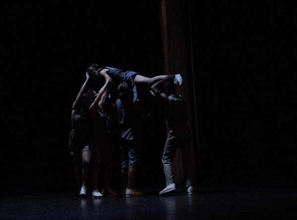 On n’aborde pas la tempête de la même façon, selon si on se situe dans une zone à cyclones ou sur les rives de la Garonne. Souffle retient le sien, comme dans l’œil du cyclone, en attente d’un déferlement ou d’une dévastation. On redoute, on se solidarise, on joue en équipe. Lors de la rencontre avec le public qui suivit la représentation, la chorégraphe dit s’être inspirée d’une équipe de handball. Equipe mixte et, comme en sports, faite de corps engagés mais non érotisés. Là aussi, cette danse est cash, sans arrière-pensées et donc parfaite pour tous âges et toutes situations.