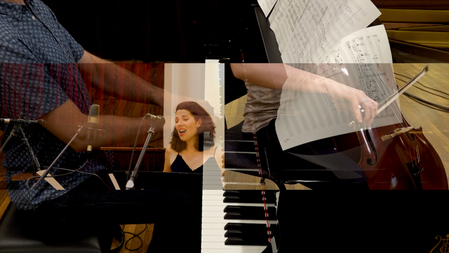La qualité technique de la prise de son et la restitution de la musique est admirable. Les deux chanteurs sont mis sur un plan d’égalité et forment visuellement un couple écranique, un diptyque – pour ne pas dire un split-screen. Une surimpression qui contraste avec le montage cut permet d’autre part de réunir l’orchestre. On y entrevoit à peine le pianiste, ainsi que la violoncelliste Myrtille Hetzel, et, ce qu’il faut, comme il se doit, les chanteurs. La musique, en dehors des accords martelés en début de bande, est dans la tradition de l’école française, par conséquent encore tonale, sous influence classique, Aurélien Richard ayant voulu rendre hommage à Gabriel Fauré. Le finale est consacré à l’enfance, représentée par des élèves du collège Saint-Joseph et une classe de CM2 de l’école Paul Gauguin de Melgven.