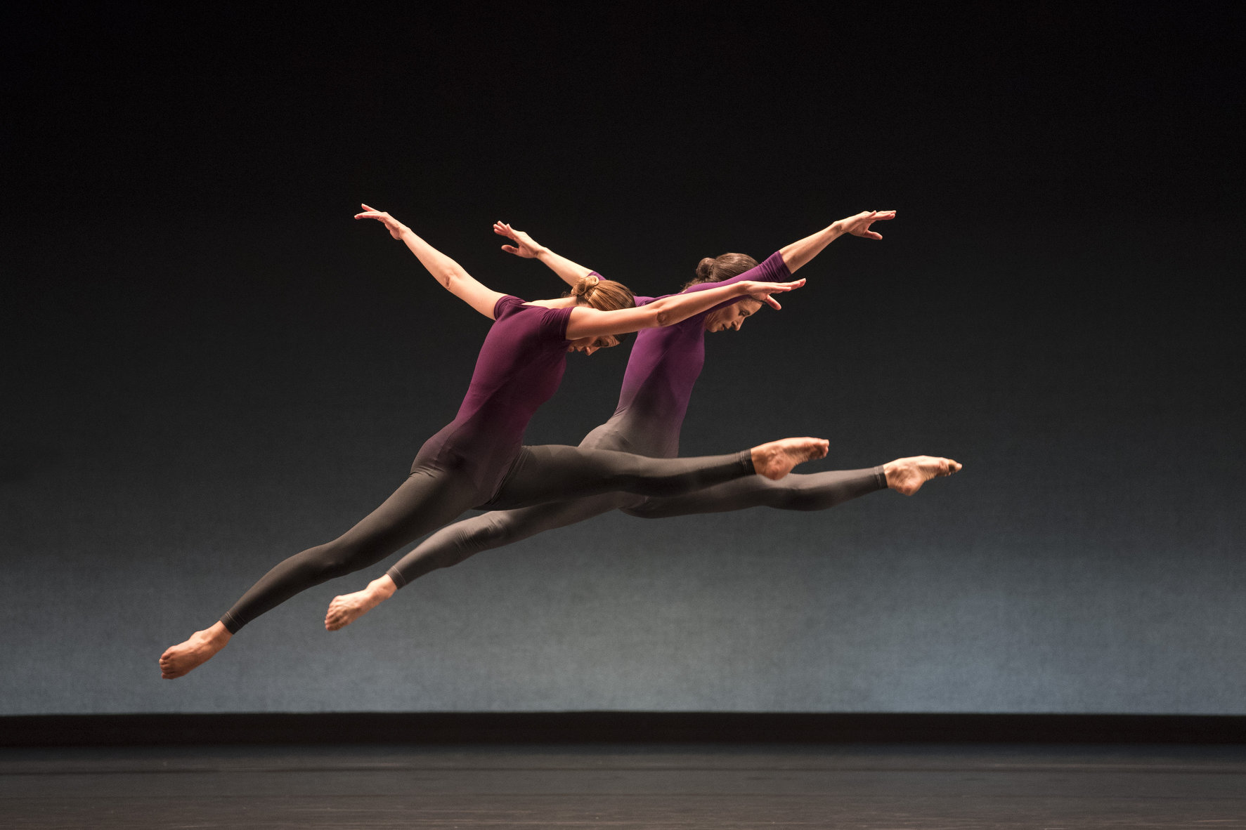 Une image qui évoque la vitalité et l'énergie qui se dégagent d'Exchange de Merce Cunningham. Créée en 1978, la pièce, composée d’une gamme de mouvements qui constituent des « phrases » tirées au sort et reprises partiellement d’une section à l’autre, d’une complexité inouïe, continue de subjuguer.