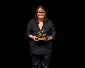 Maguy Marin a choisi une cérémonie en toute simplicité pour recevoir ce Lion sur scène après la représentation.