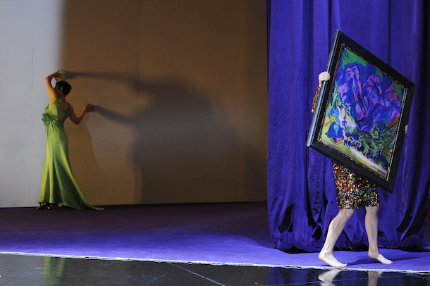 On songerait au dadaïsme, à ses cabarets, pour évoquer un univers oscillant entre du sm gay kitsch, du kamasutra foutraque ; mais encore de l'interactivité absurde avec la salle, et autre prestidigitation de baraque de foire. On l'a compris : ici l'esprit de contrôle ne domine pas, encore moins celui de sérieux. Comme en résistance à tous les retours à l'ordre, le coeur qui menacerait de s'arrêter chez Meg Stuart (selon le titre de sa pièce), le ferait au comble de l'ébullition, de l'échevelé et de l'insolence.
